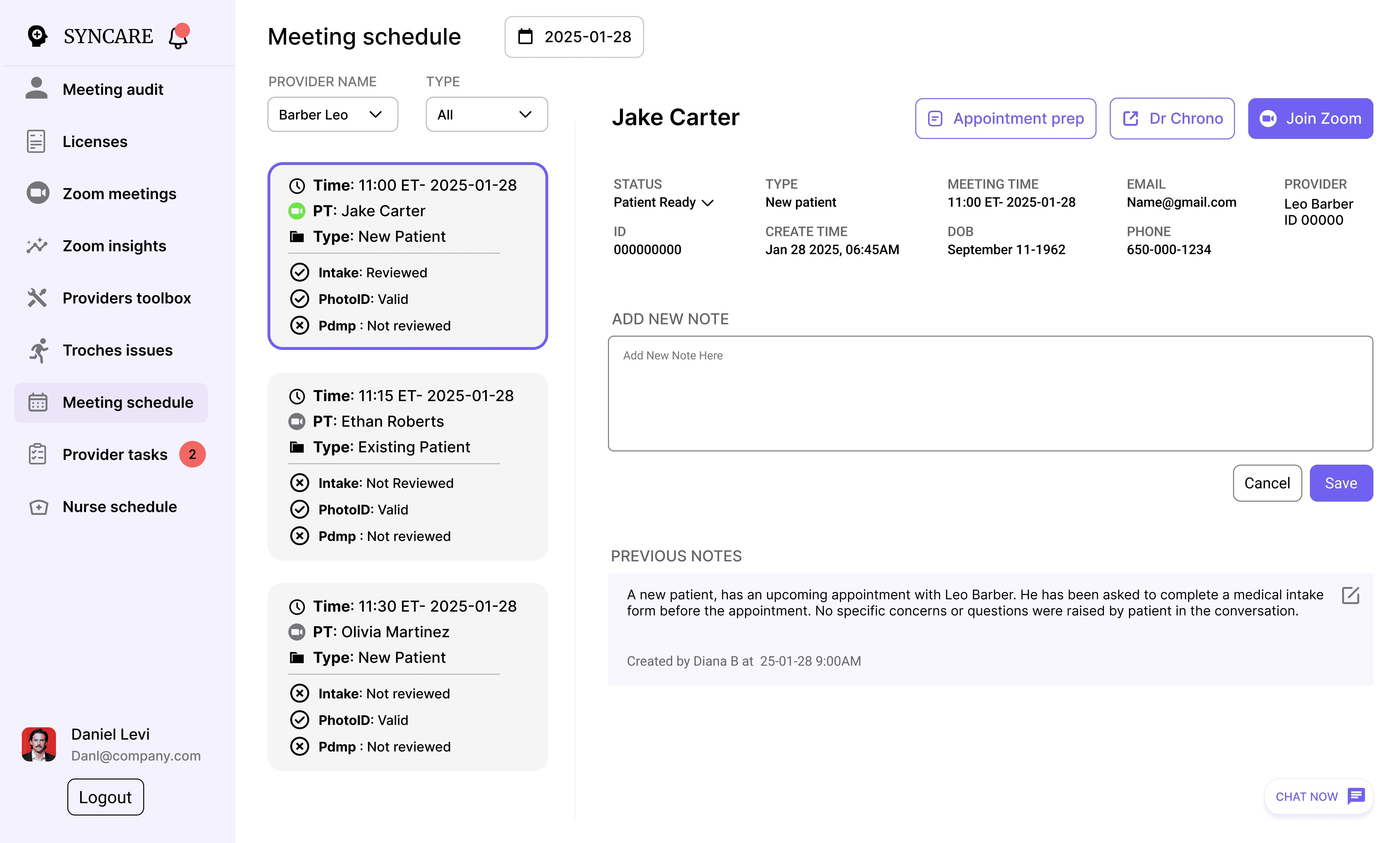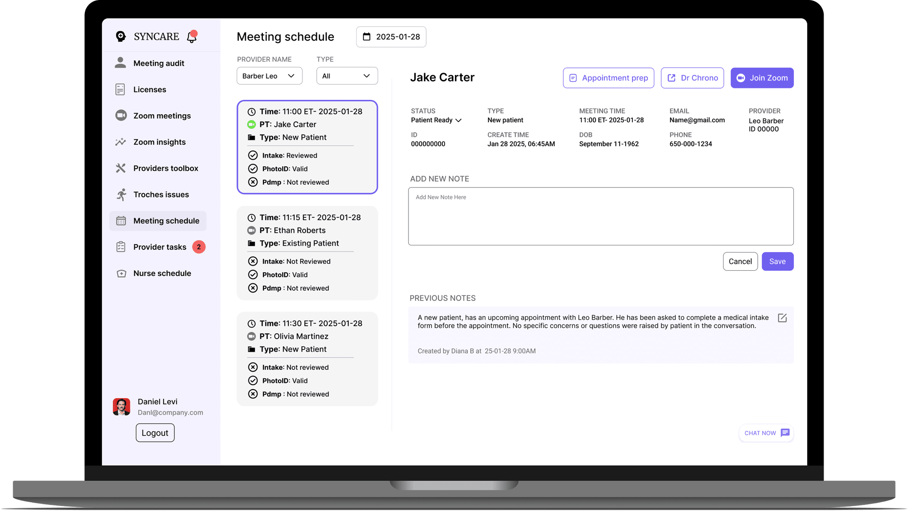 Syncare is a provider-patient management platform designed for a healthcare startup