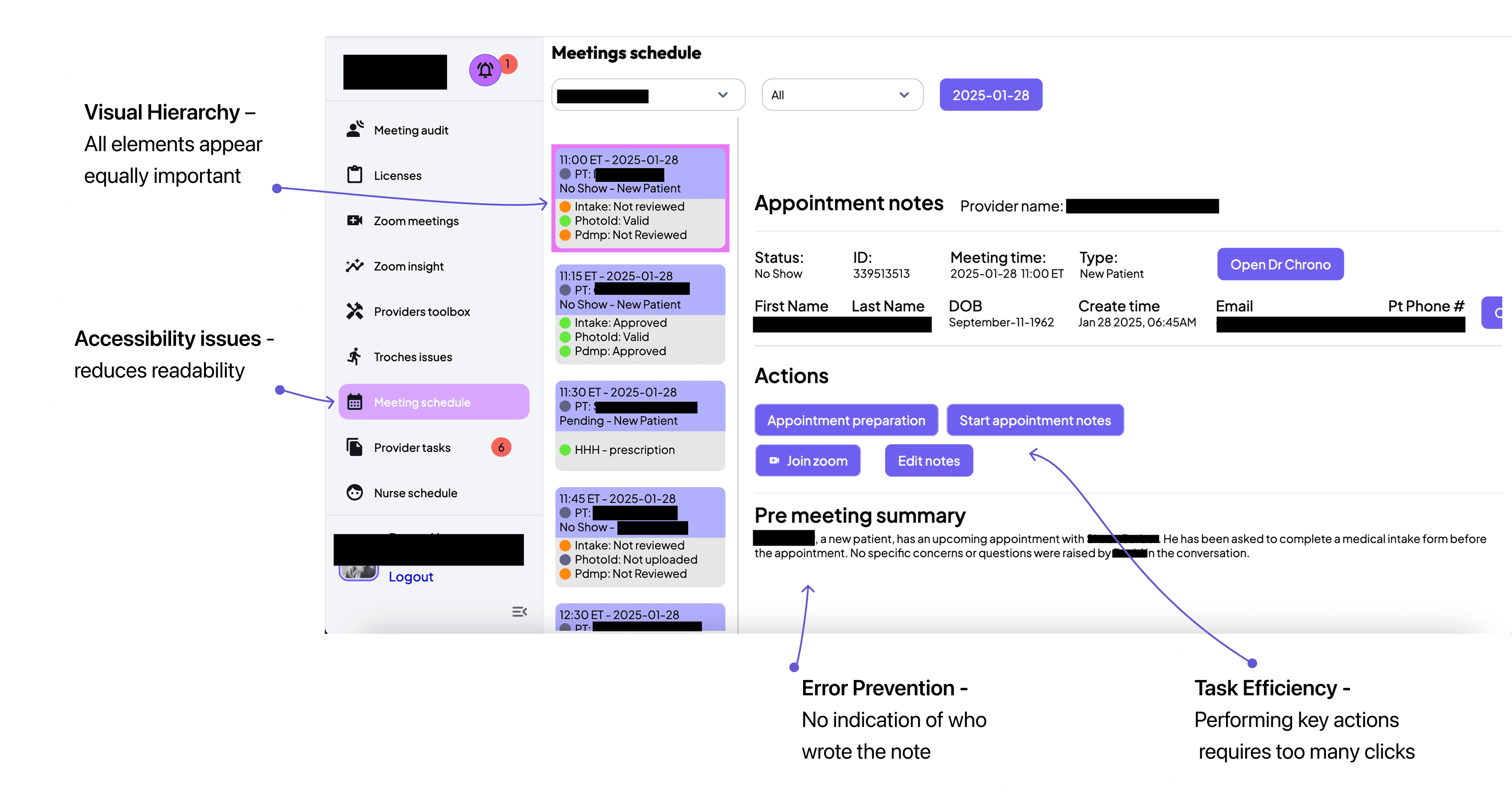 Existing patient management interfaces are cluttered and inefficient, turning back-to-back appointments